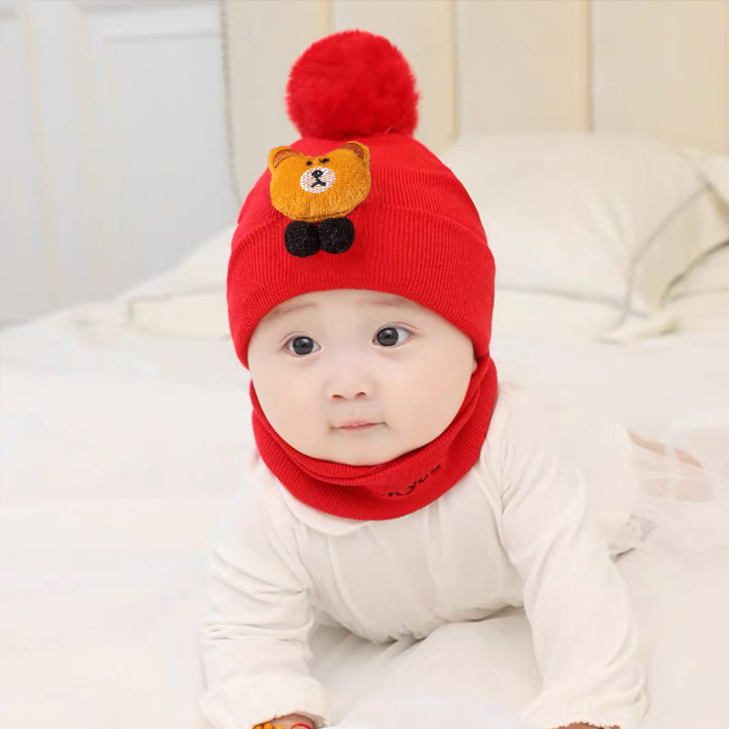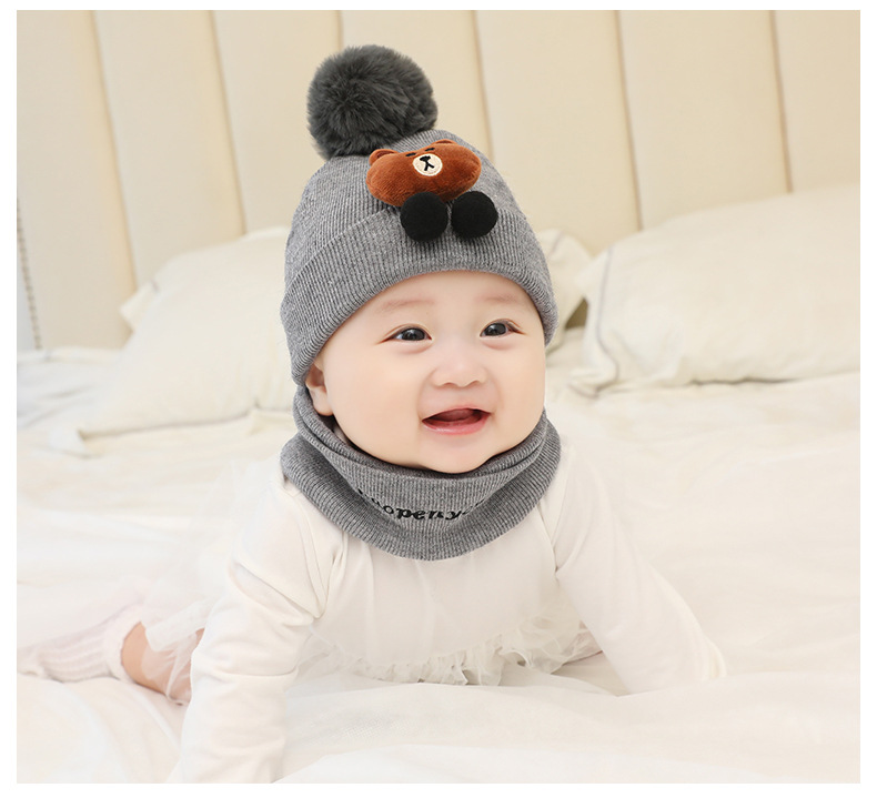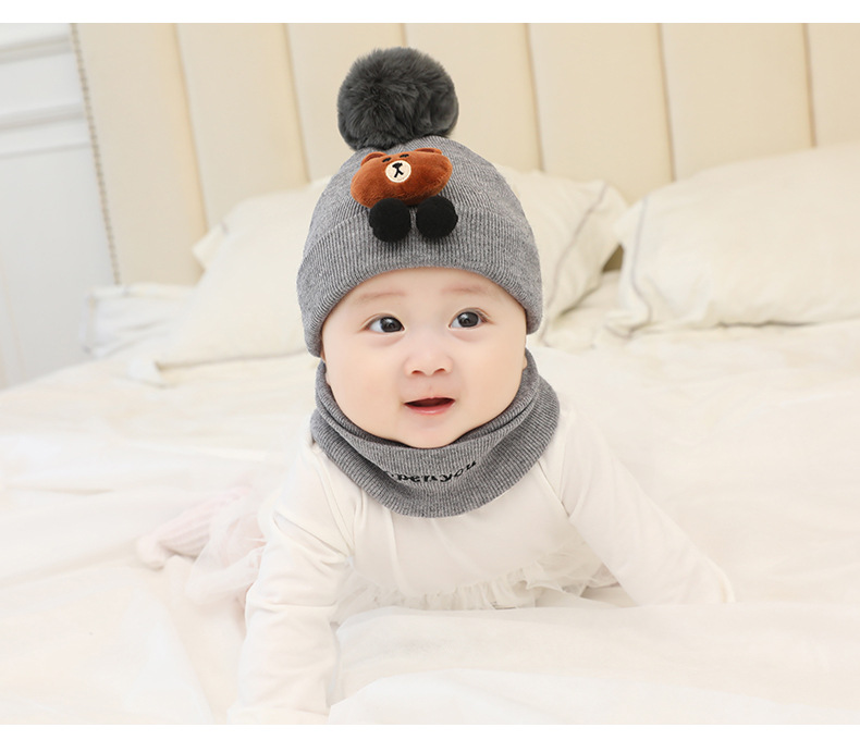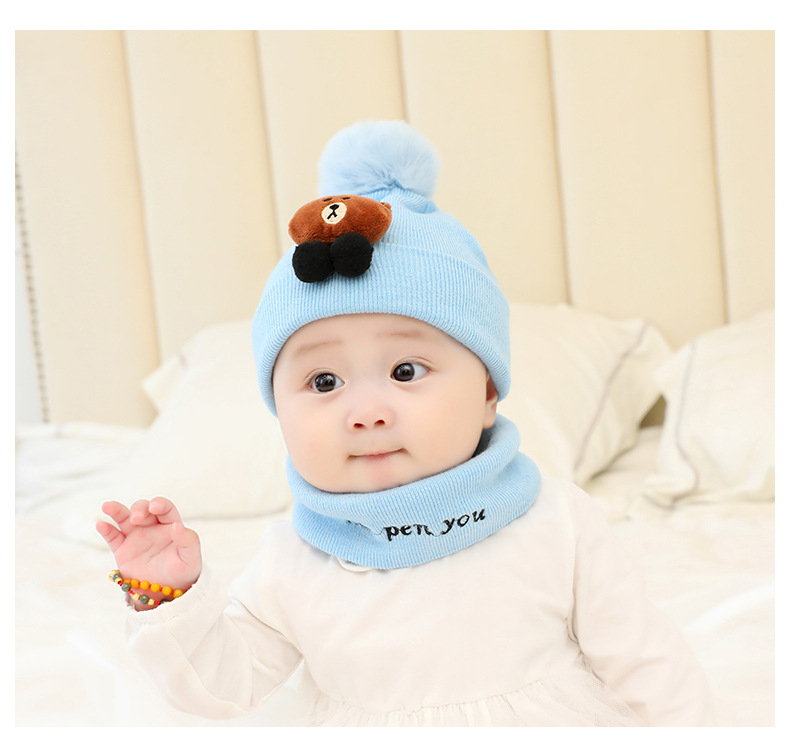 Kids caps newborn baby woolen cap with neck scarf for boys and girls