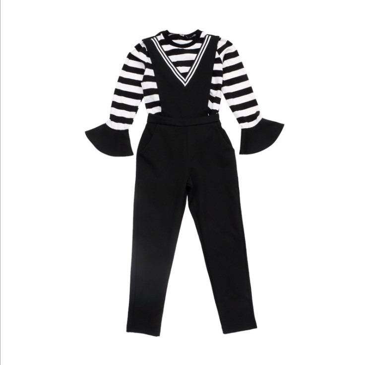 Kids fashion Pakistan jumpsuit style striped shirt and pant dress for girls